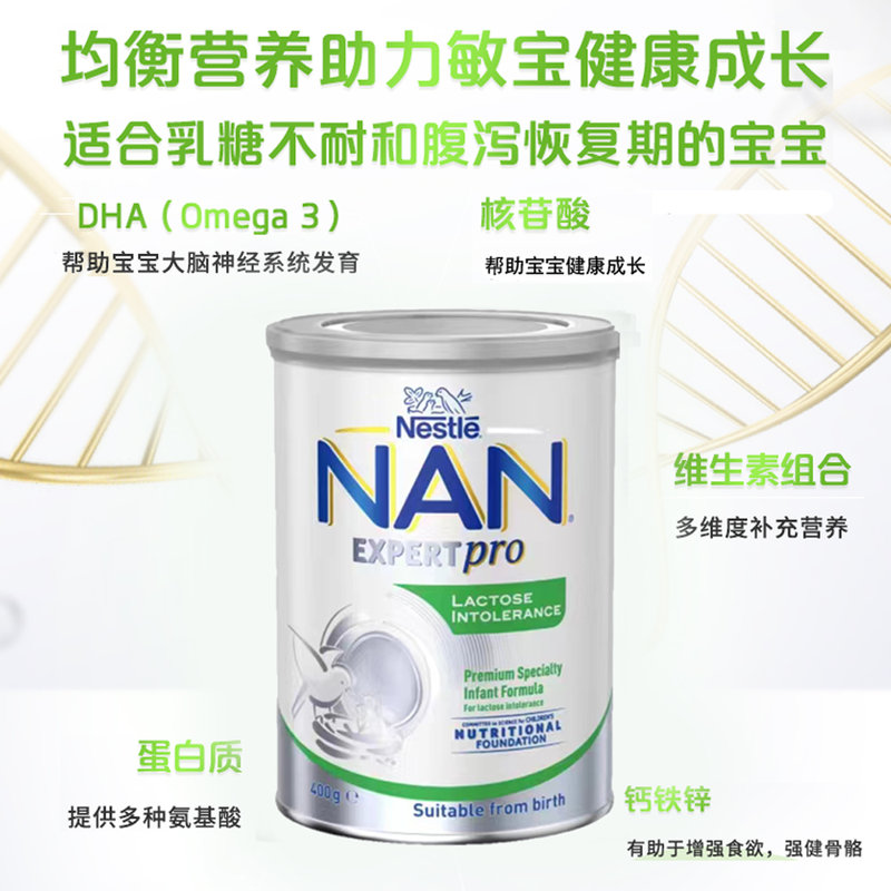 保税区澳洲 雀巢(Nestle)NAN能恩安儿宁LI无乳糖婴儿奶粉400g 适合0-12个月