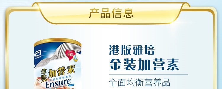 商品名称:保税区【买赠】港版 雅培(Abbott) 金装成人加营素 巧克力味 900g
