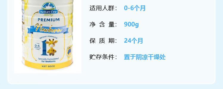 商品名称:保税区澳洲 奥纯冠 (Nature One Dairy)全护铂金版婴儿奶粉 1段 900g(适合0-6个月)