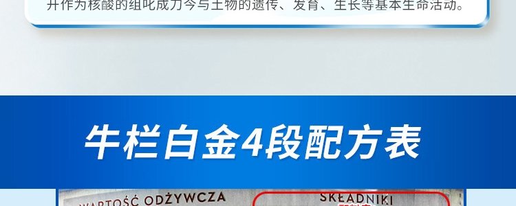 商品名称:保税区波兰 牛栏(Bebilon)婴儿配方奶粉4段白金版 800g 适合2岁+