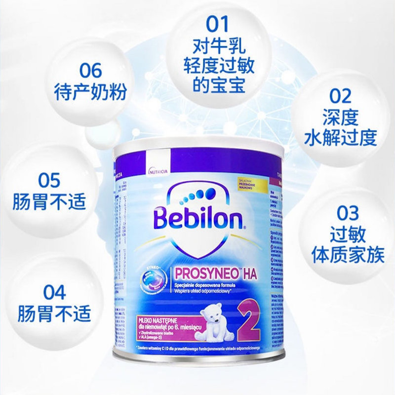 商品名称:保税区波兰 牛栏(Bebilon)HA半水解奶粉2段 400g 适合6-12个月