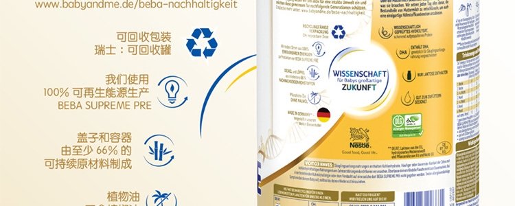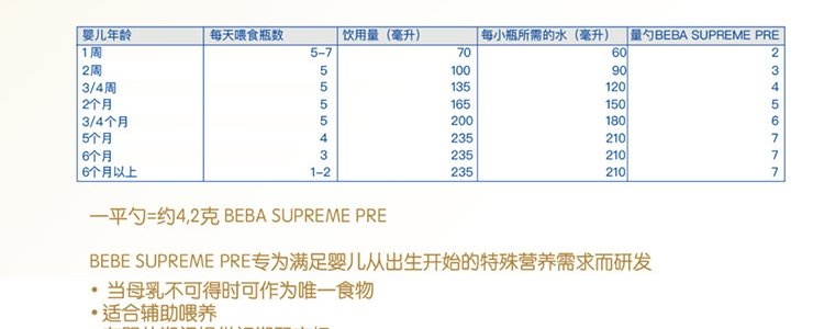 商品名称:保税区德国 雀巢(Nestle)BEBA SUPREME婴幼儿奶粉 pre段 800g 适合0-6个月(新旧包装随机发货)