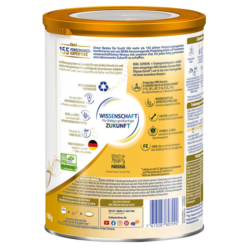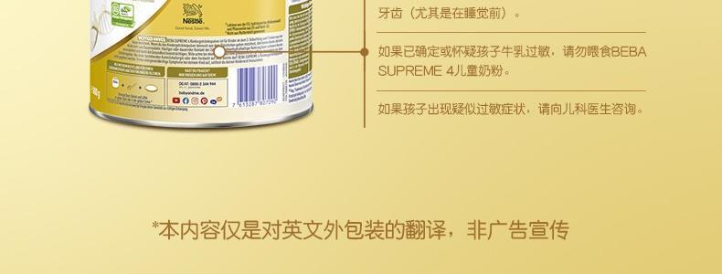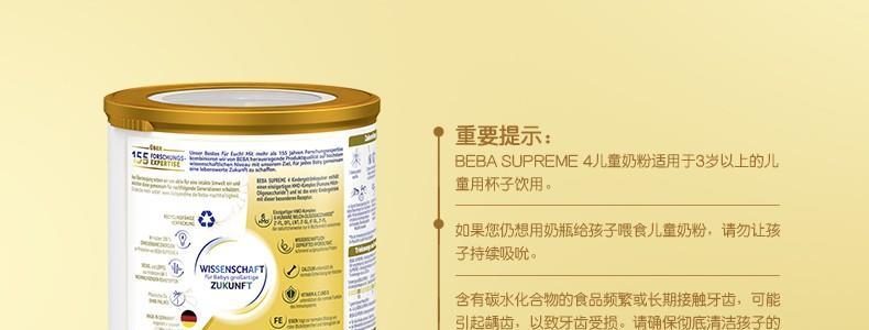 保税区德国 雀巢(Nestle)BEBA SUPREME婴幼儿奶粉 4段 800g 适合3-6岁(新旧包装随机发)
