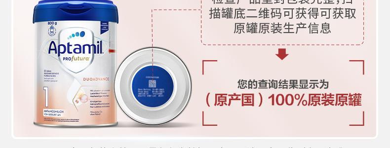 商品名称:保税区德国 爱他美(Aptamil)白金版婴儿配方奶粉 800g 1段 适合0-6个月