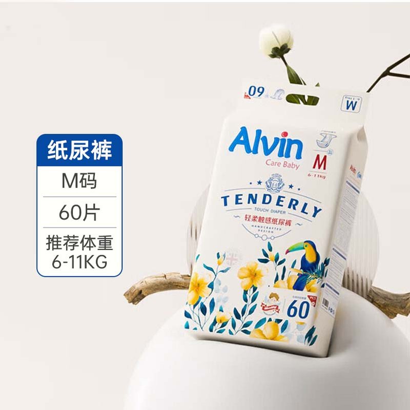 商品名称:艾薇尔(Alvin)经典轻柔触感纸尿裤 M60(6-11kg)