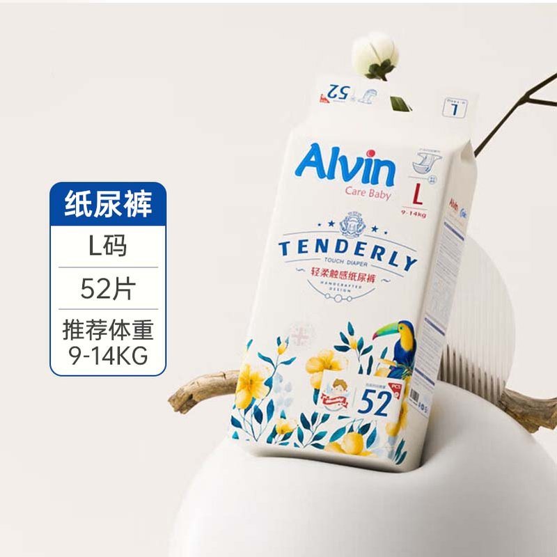 艾薇尔(Alvin)经典轻柔触感纸尿裤 L52(9-14kg)