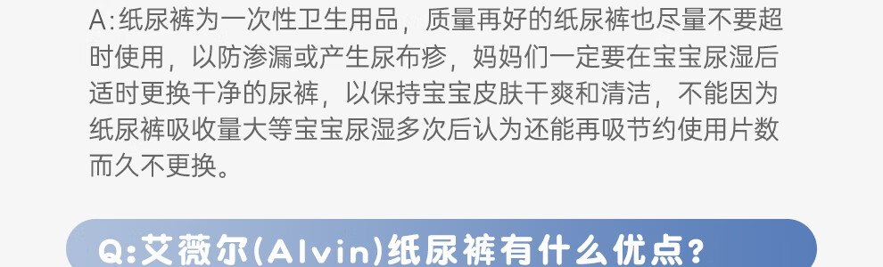 艾薇尔(Alvin)经典轻柔触感纸尿裤 XL44(12-17kg)