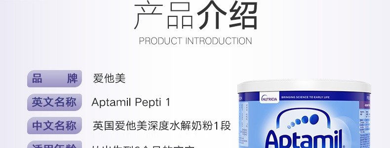 商品名称:保税区英国 爱他美(Aptamil)深度水解1段 800g 适合0-6个月