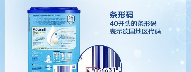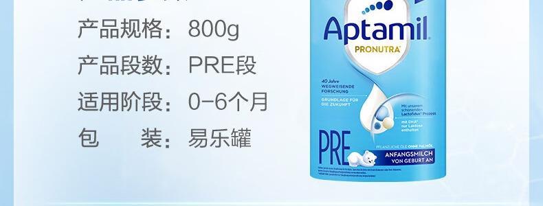 商品名称:保税区德国 爱他美(Aptamil)婴儿配方奶粉易乐罐蓝罐 800g PRE段 适合0-6个月(新老包装随机发货)