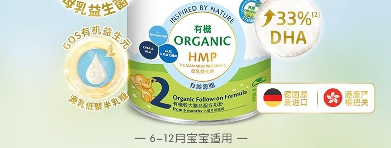 保税区港版 喜宝(HiPP)有机双益HMP较大婴儿奶粉2段 800g
