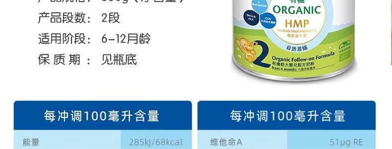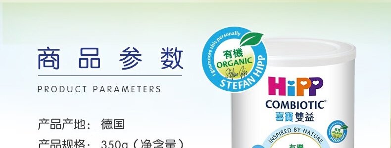 商品名称:保税区港版 喜宝(HiPP)有机双益较大婴儿奶粉小罐 2段 350g
