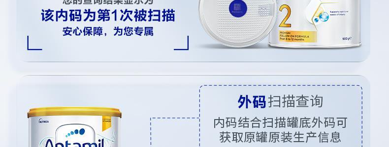 商品名称:保税区澳洲 爱他美(Aptamil)婴儿配方奶粉白金版 2段 900g 适合6个月以上