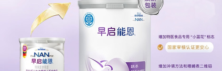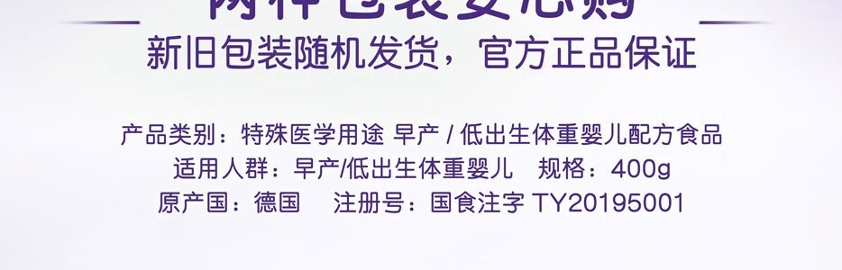 商品名称:雀巢(Nestle)特殊学用途早产/低出生体重婴儿配方食品 400g*新包装 适合早产/低体重出生婴儿(早启能恩)