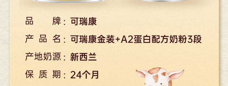 商品名称:保税区澳洲 可瑞康(Karicare) 金装A2蛋白幼儿配方奶粉 3段 900g 适合1岁及以上