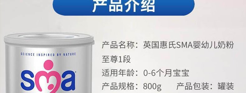商品名称:保税区英国 惠氏(Wyeth)sma铂金版配方奶粉1段800g(新旧包装随机发货)