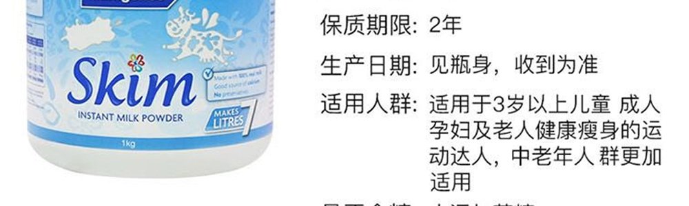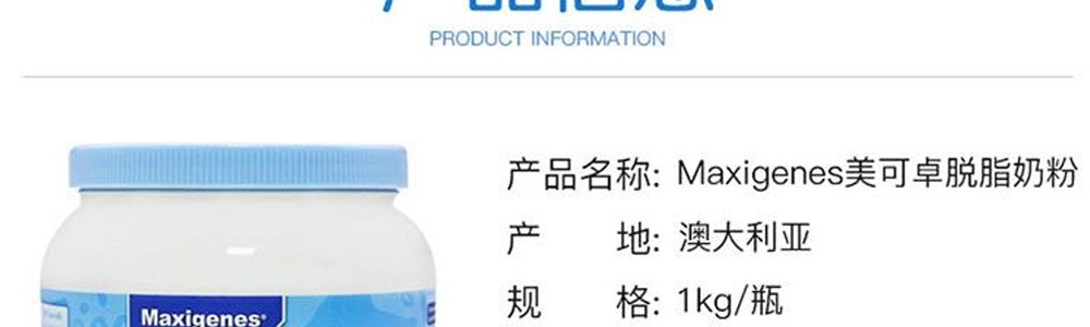 商品名称:保税区澳洲 美可卓(Maxigenes)脱脂成人奶粉 1kg