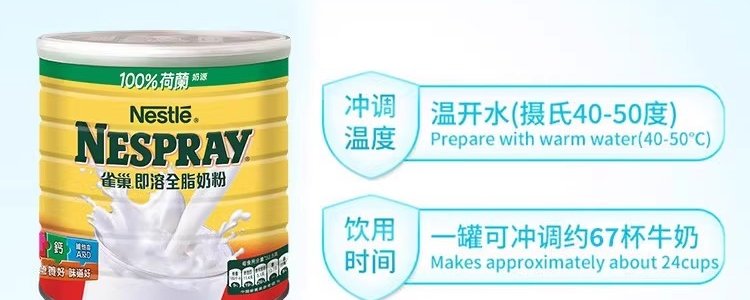 保税区港版 雀巢(Nestle)全脂高钙即溶奶粉 800g
