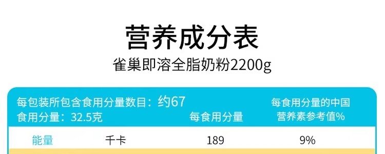 商品名称:保税区港版 雀巢(Nestle)全脂高钙即溶奶粉 2.2kg