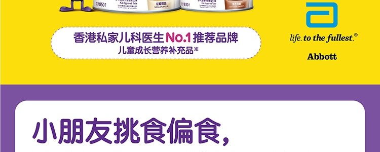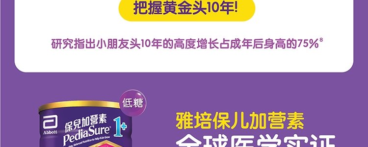 商品名称:保税区【买赠】港版 雅培(Abbott) 保儿加营素全新升级版助长配方粉1+ 适合1-3岁 香草味 850g