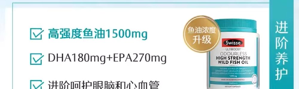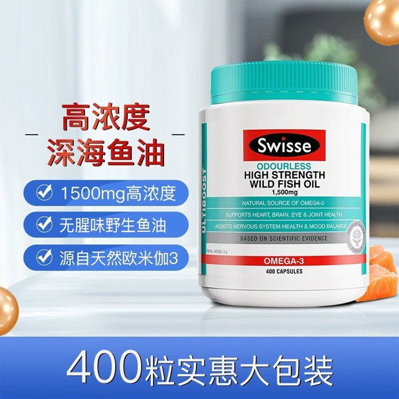 商品名称:【直邮】澳洲 瑞思 (SWISSE)深海鱼油1500mg 无腥味 400粒