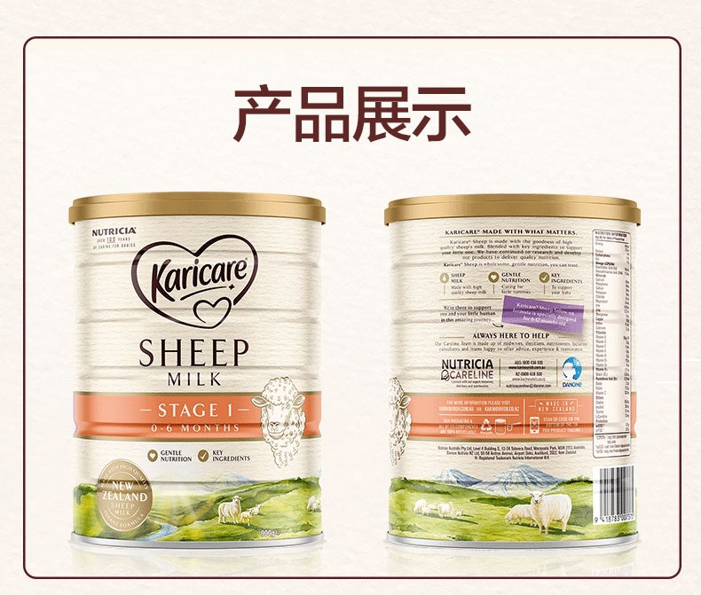 商品名称:保税区新西兰 可瑞康(Karicare)幼儿配方绵羊奶粉 1段 900g
