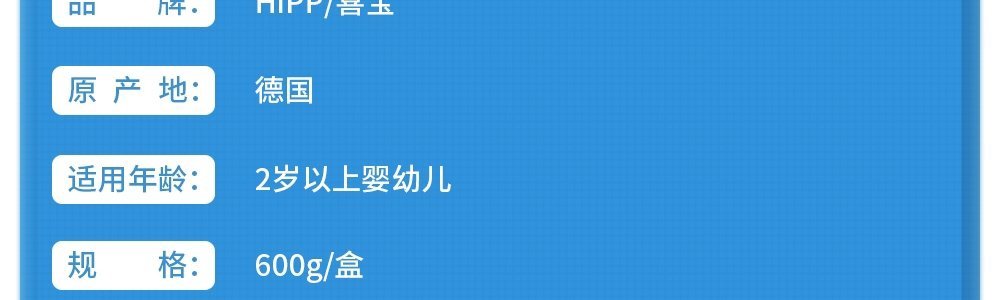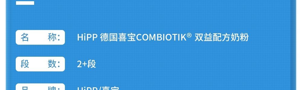 商品名称:保税区德国 喜宝(HiPP)益生菌奶粉 2+段,适合2岁以上