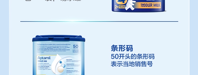 商品名称:保税区英国 爱他美(Aptamil)婴幼儿奶粉 4段 800g 适合2岁以上
