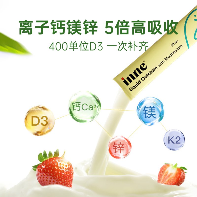 商品名称:保税区德国 因你(INNE)小金条钙镁锌儿童液体钙-草莓味 骨骼生长 牙齿发育 30条/盒