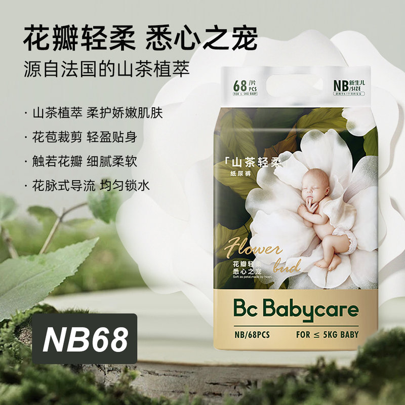 商品名称:babycare 山茶轻柔婴儿纸尿裤 NB68(0-5kg) 新旧包装随机发