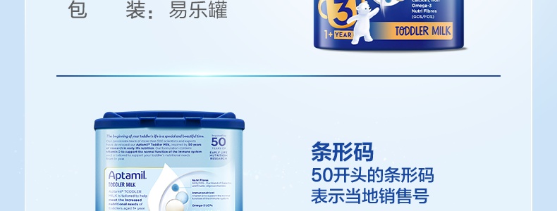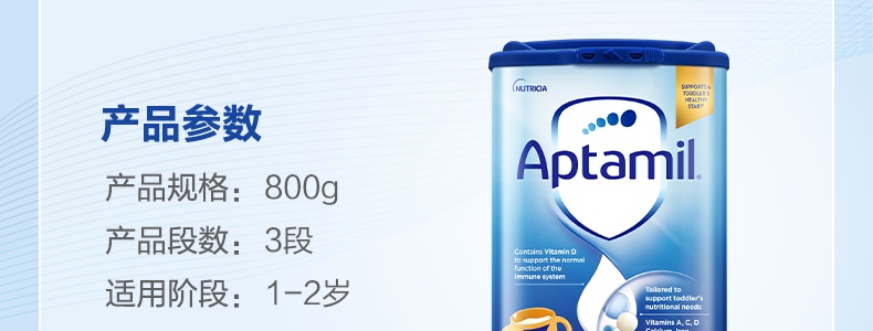商品名称:保税区英国 爱他美(Aptamil)婴幼儿奶粉 3段 800g 适合1-2岁