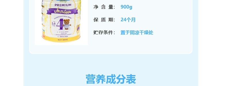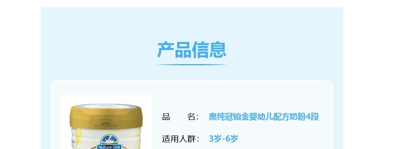 商品名称:保税区澳洲 奥纯冠 (Nature One Dairy)全护铂金版婴儿奶粉4段 900g 适合3岁+