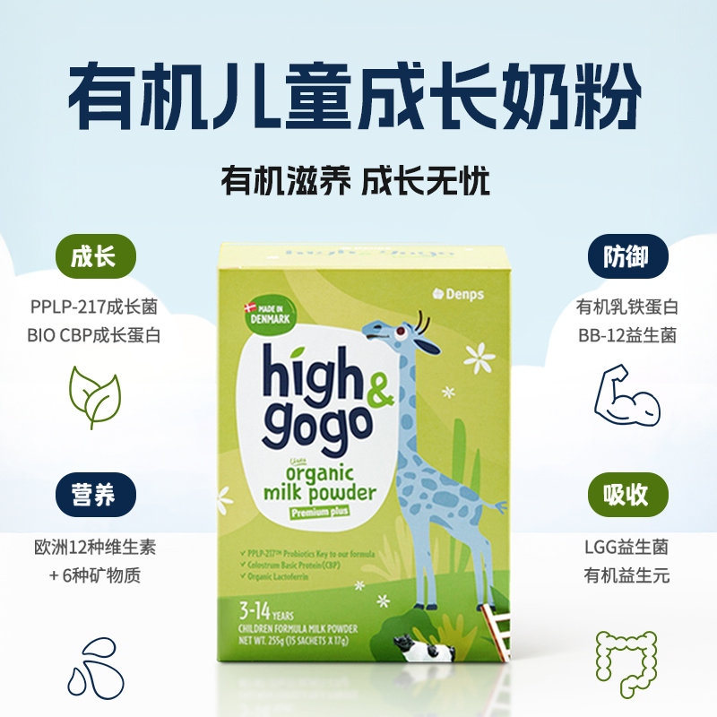 商品名称:保税区【买赠】丹麦 丹普斯(Denps)长高高High GoGo有机儿童调制乳粉 17g*15条
