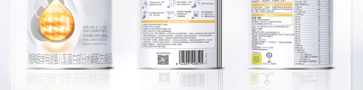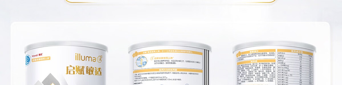 商品名称:惠氏 启赋敏适特殊医学用途婴儿乳蛋白部分水解配方食品 800g 适用人群: 0-12月龄乳蛋白过敏高风险婴儿