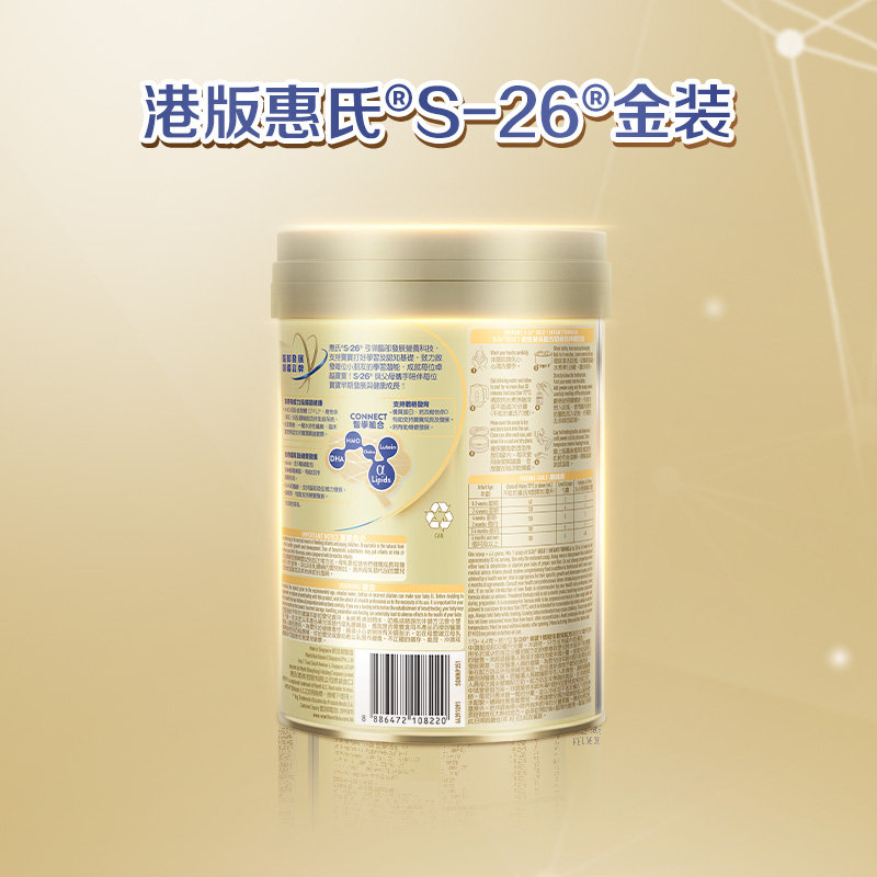 商品名称:保税区港版 惠氏(Wyeth)S-26金装婴幼儿配方奶粉1段 850g 适合0-6个月(新包装)