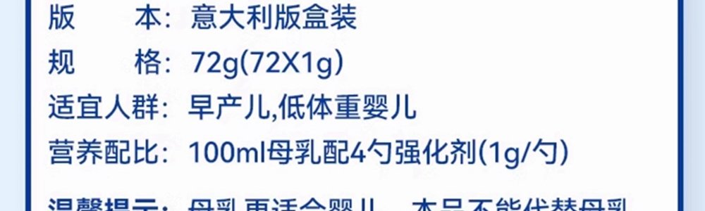 商品名称:保税区瑞士(Nestle)雀巢 Nestle 雀巢母乳强化剂(意大利版) 72g/盒