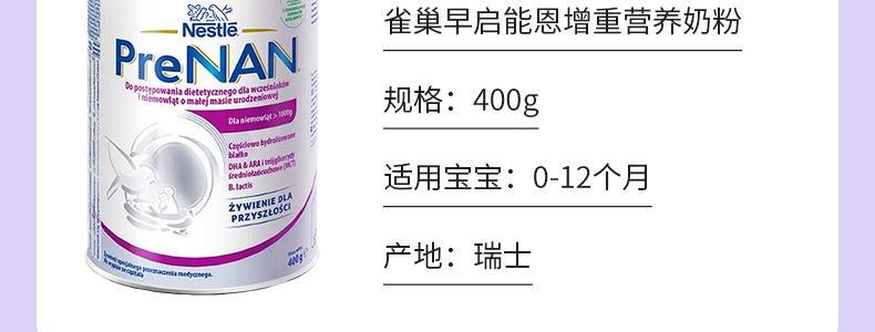 商品名称:保税区波兰版 雀巢(Nestle)早启特别能恩早产儿奶粉 400g(0-12个月)