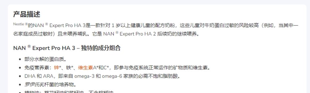 商品名称:保税区波兰版 雀巢(Nestle)超启适度水解奶粉 3段800g( 12月以上)