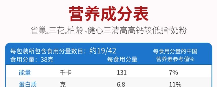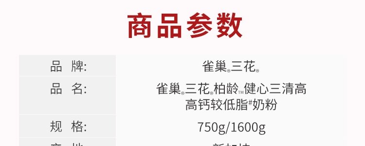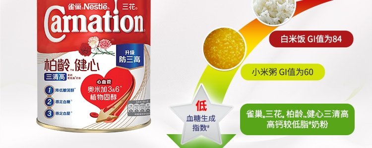 商品名称:保税区新加坡 雀巢(Nestle)三花柏龄健心三清高奶粉 750g