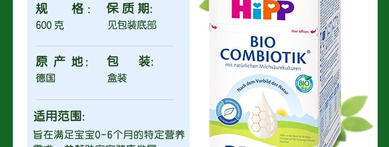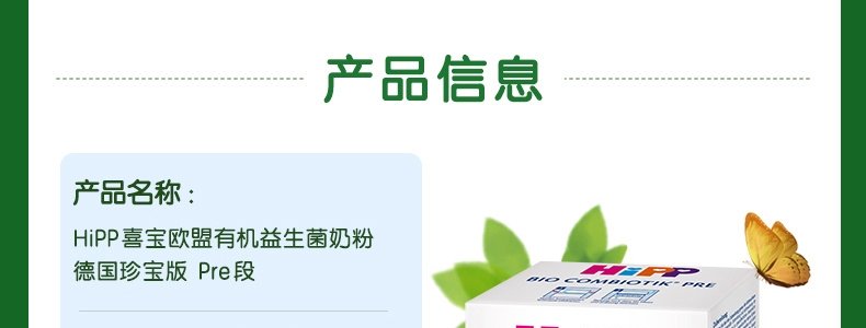 商品名称:保税区【超值满赠】德国 喜宝(HiPP)益生菌奶粉 Pre段 600g(适合0-6个月)