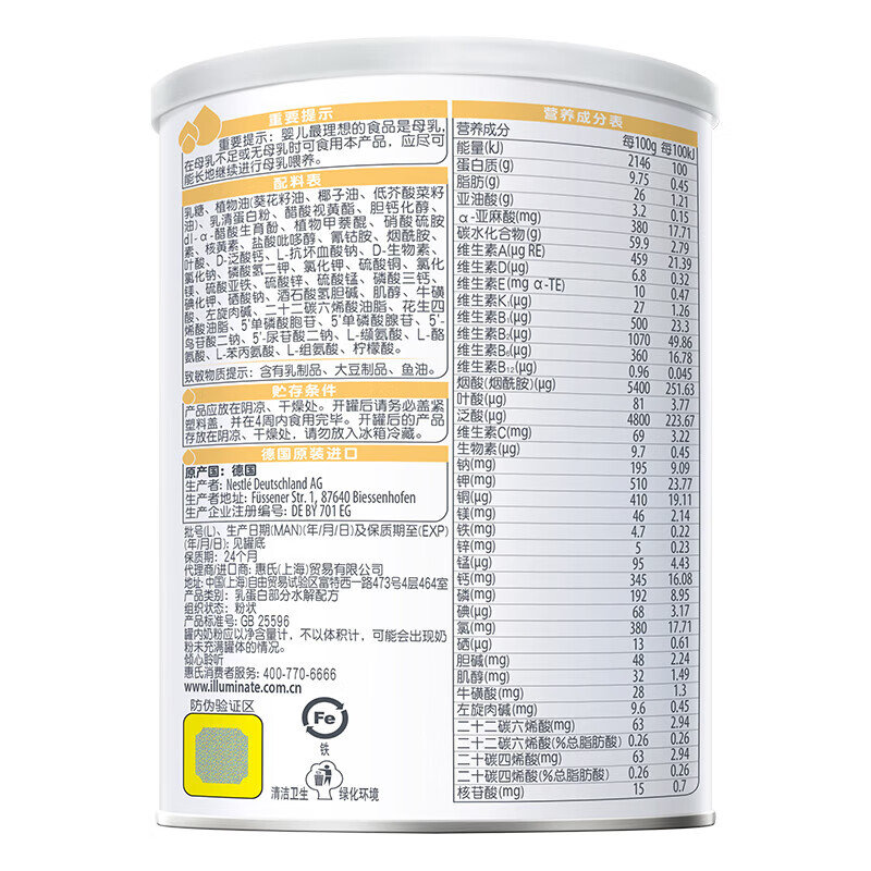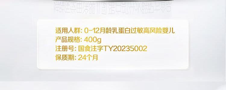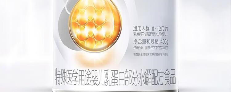 商品名称:惠氏 启赋敏适特殊医学用途婴儿乳蛋白部分水解配方食品 400g 适用人群: 0-12月龄乳蛋白过敏高风险婴儿