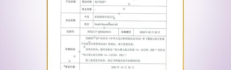 商品名称:雀巢(Nestle)超启能恩婴幼儿配方奶粉 2段 760g 适合6-12个月*白盖紫盖新旧包装随机发货