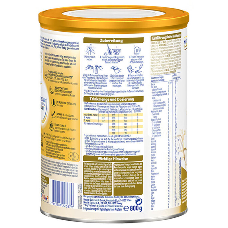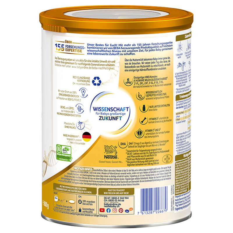 保税区德国 雀巢(Nestle)BEBA SUPREME婴幼儿奶粉 2段 800g 适合6-12个月(新旧包装随机发货)