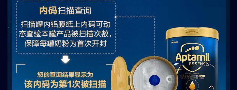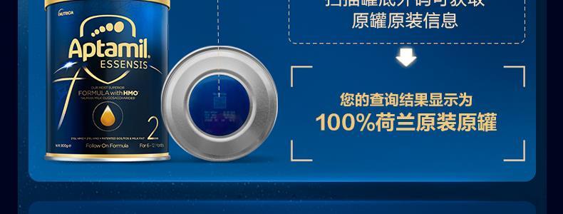 商品名称:保税区爱他美 Essensis奇迹蓝罐HMO较大婴儿配方奶粉 2段 900g 6-12个月