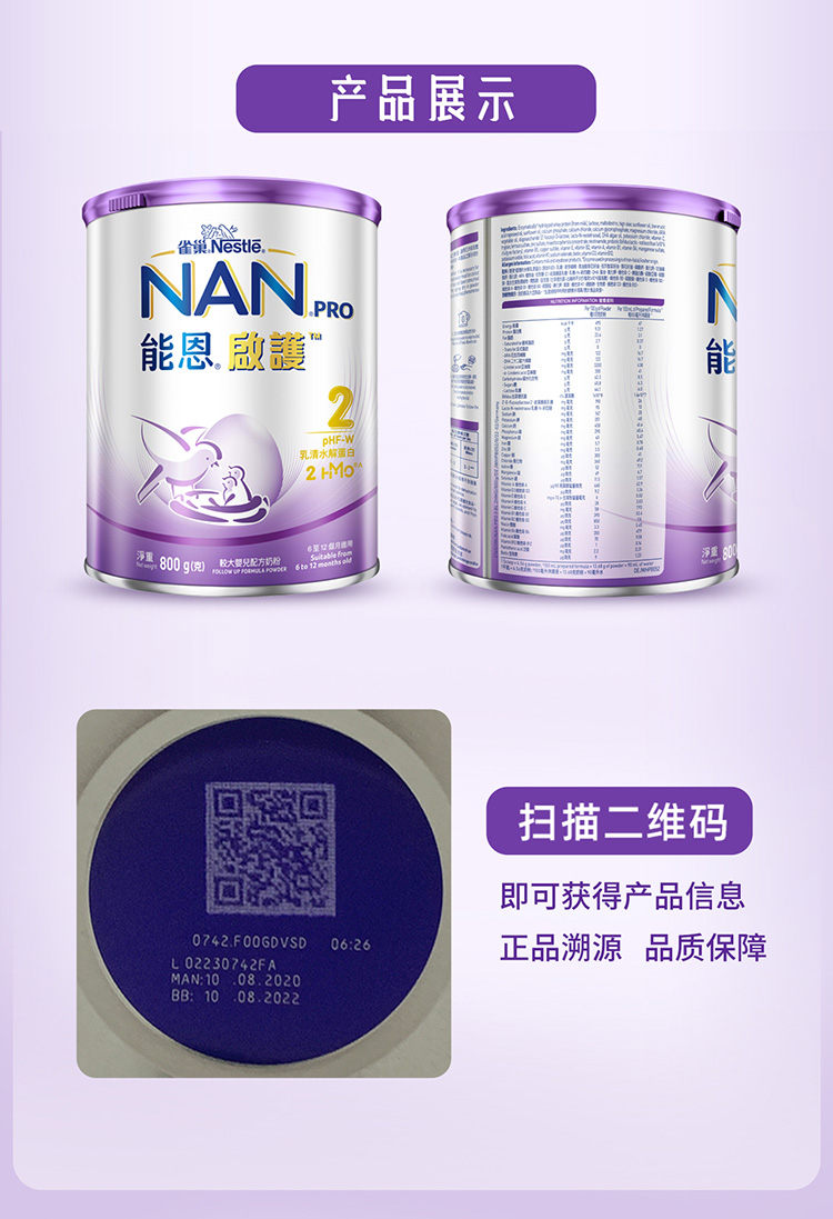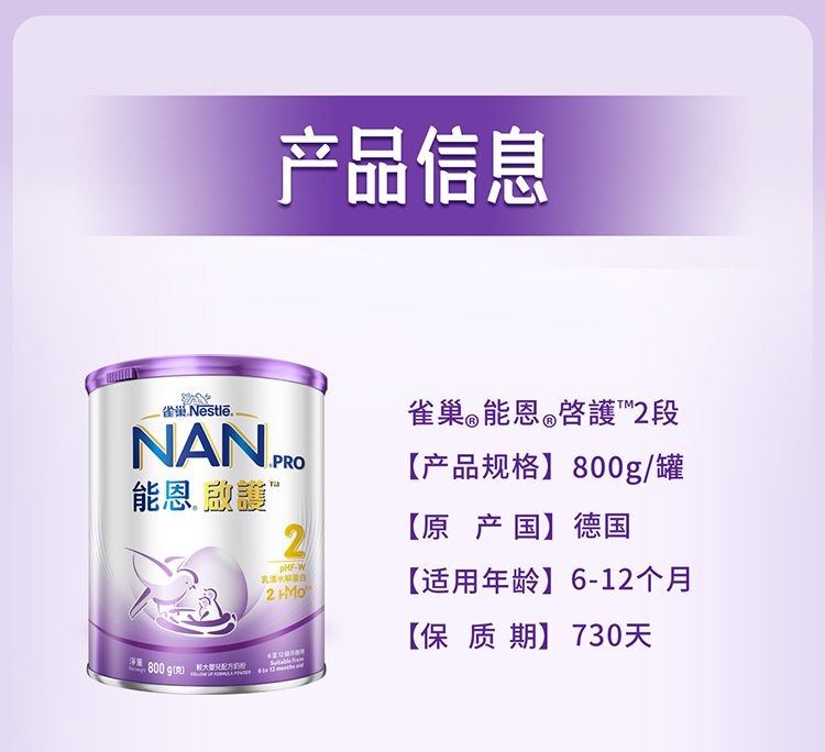 商品名称:保税区港版 雀巢(NESTLE)能恩启护适度水解 2段 800g(6-12月)