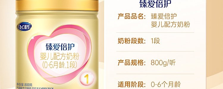 商品名称:飞鹤 臻爱倍护婴幼儿配方奶粉 1段 800g 适合0-6个月*不支持异地积分红包