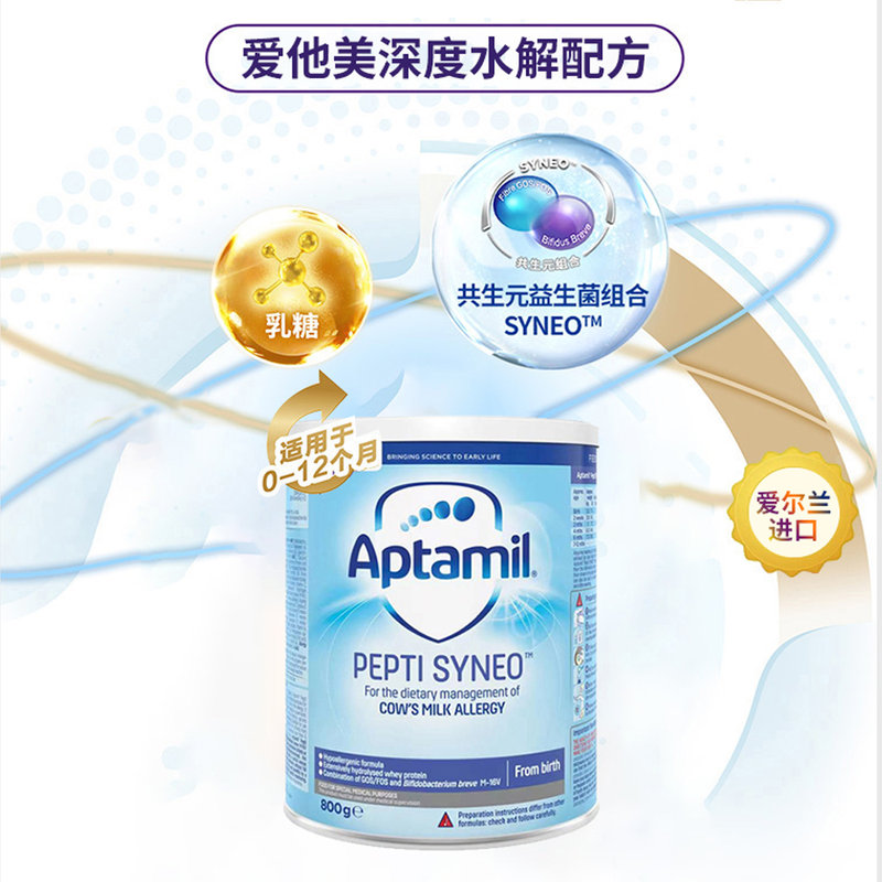 保税区英国 爱他美(Aptamil)syneo深度水解配方奶粉 800g 适合0-12个月